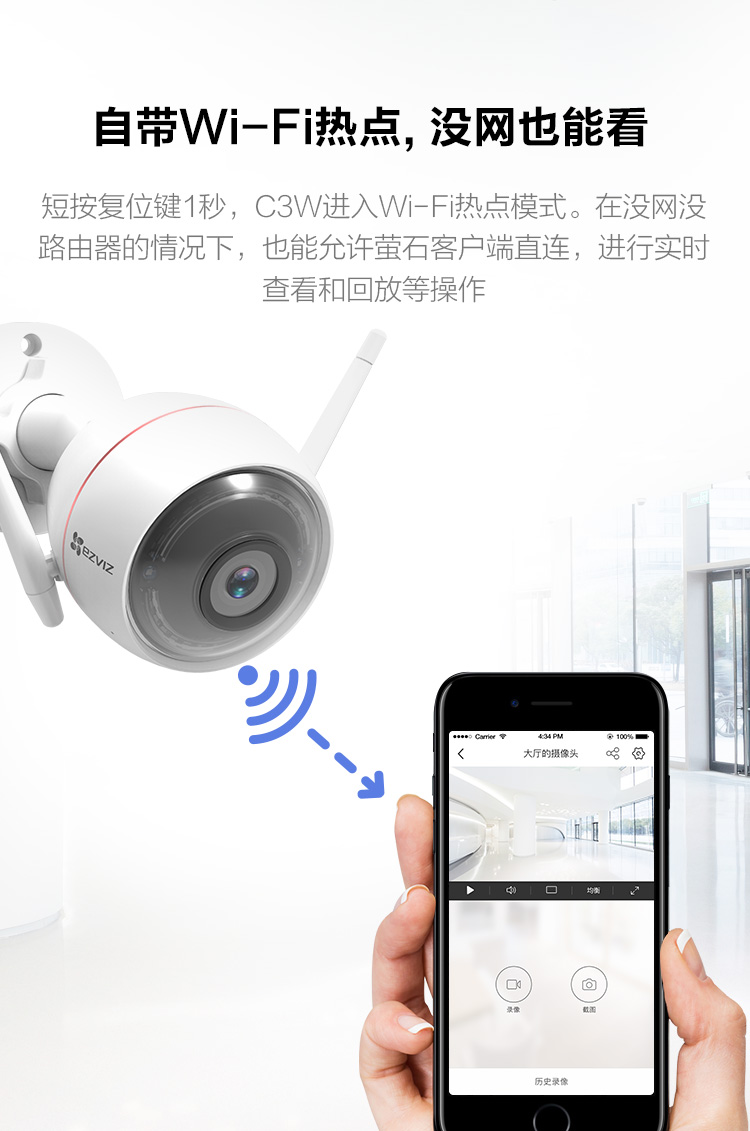 海康螢石無(wú)線wifi高清1080P壁掛式夜視智能安防家用報(bào)警監(jiān)控?cái)z像機(jī)
