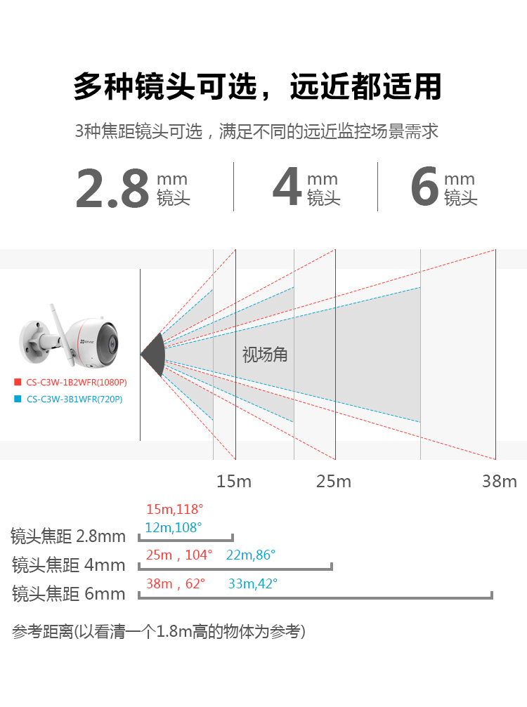 6mm@ F2.0, 水平視場(chǎng)角:54°,對(duì)角62° | ||