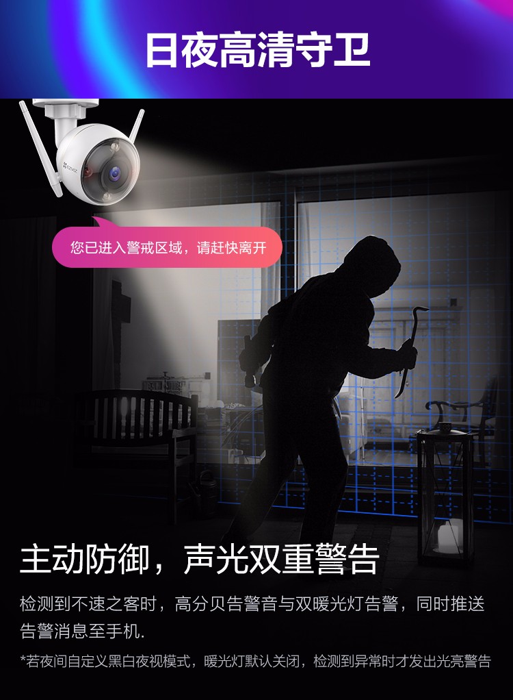 螢石C3Wi 200萬(wàn)超清全彩AI雙向語(yǔ)音通話無(wú)線監(jiān)控?cái)z像頭